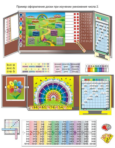 Комплект таблиц «Умножение учим с увлечением» (9 таблиц и демонстр. пособий + 56 карточек + CD с программой)