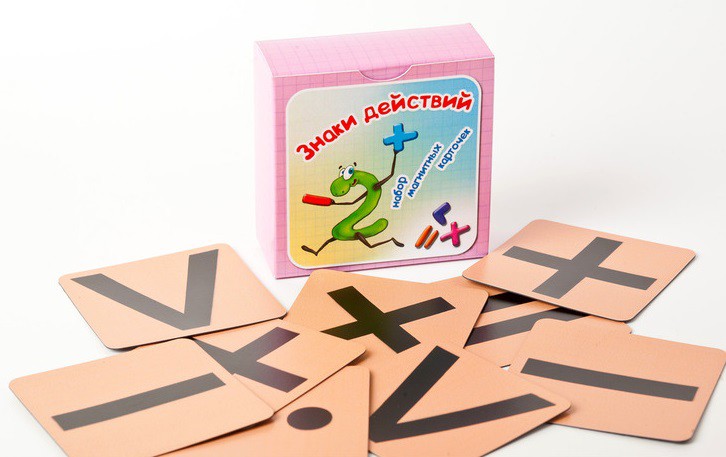 Данный набор "Знаки действий" может быть использован с карточками с числами от 1 до 20 и круглыми числами.