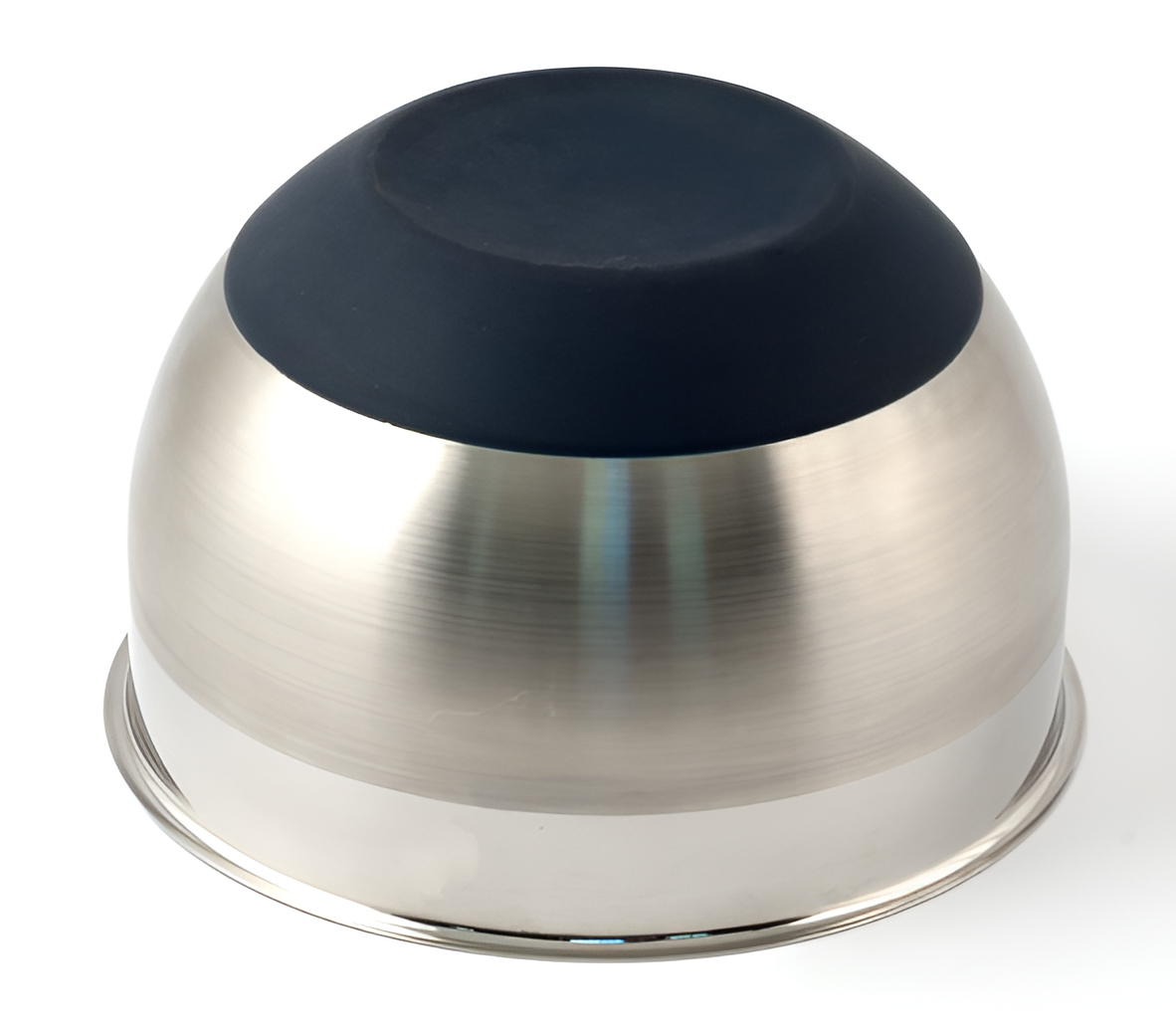 Дно миски покрыто силиконом, в результате миска не скользит и ведет себя устойчиво на любой поверхности. Миска имеет зеркальную внутреннюю и комбинированную внешнюю полировку.