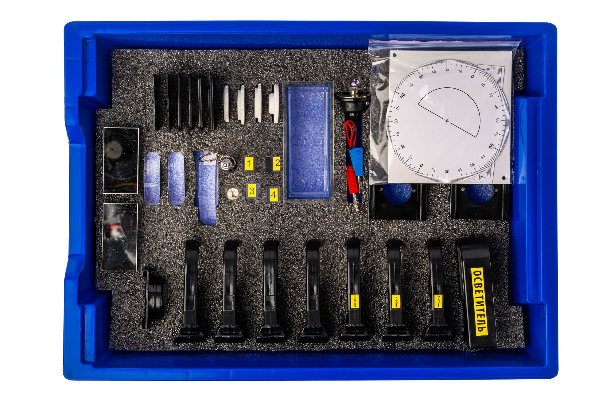 Набор предназначен для изучения оптических явлений, рассматриваемых в школьном курсе физики, определения на количественном уровне закономерностей отражения и преломления света.