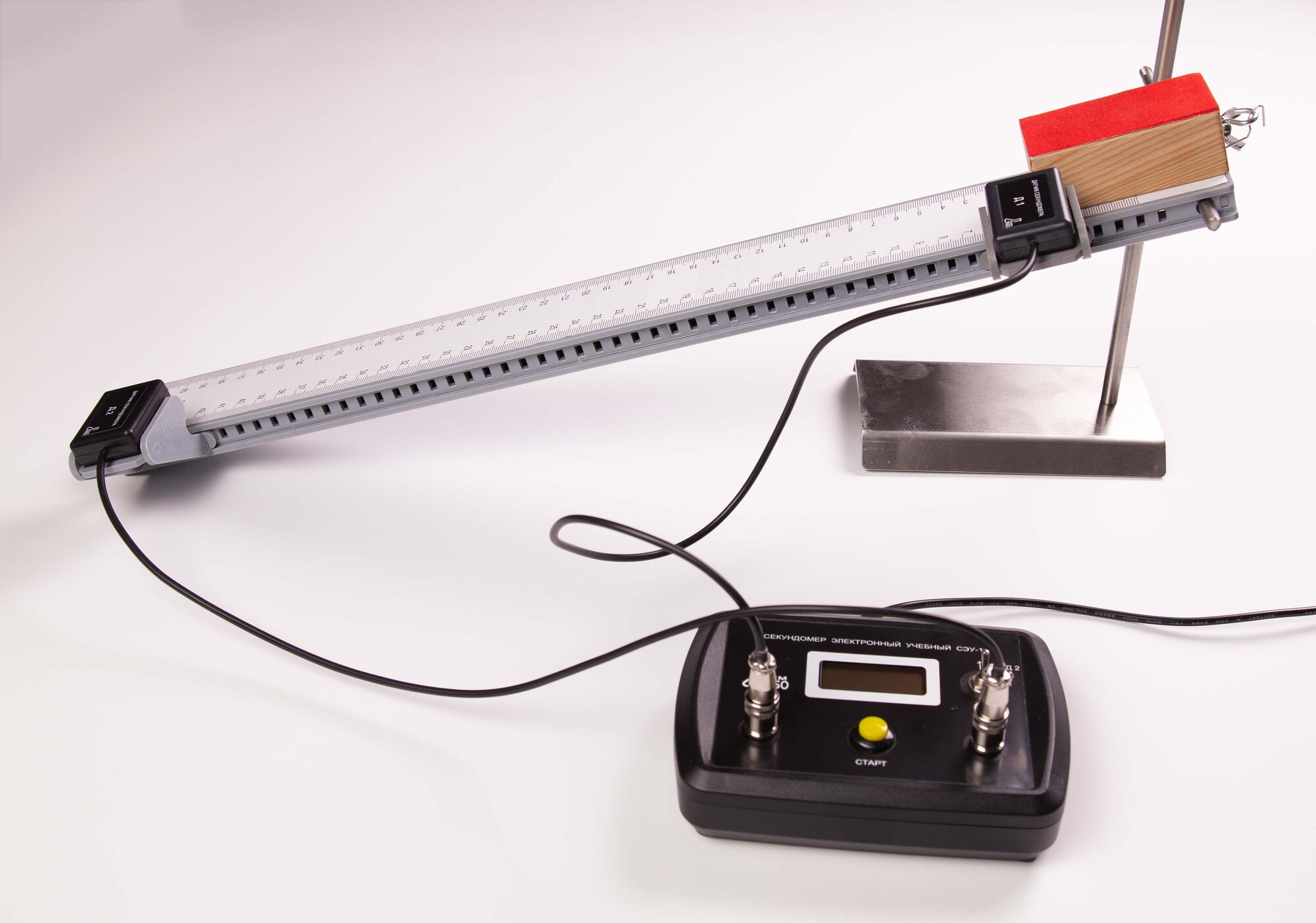 Комплект позволяет измерять ускорение и среднюю скорость движения бруска по наклонной плоскости; частоту и период колебаний математического и пружинного маятников, а также исследовать зависимости ускорения бруска от угла наклона направляющей; периода (частоты) колебаний нитяного маятника от длины нити, периода колебаний пружинного маятника от массы груза и жесткости пружины, и независимости периода колебаний нитяного маятника от массы груза.