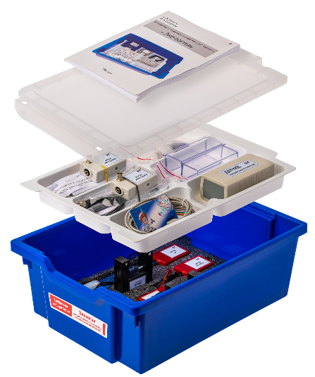 Цифровая лаборатория укомплектована в пластиковую систему хранения, которая закрывается прозрачной пластиковой крышкой на защелках для обеспечения наблюдения за содержимым. Комплект оборудования и датчики в контейнере располагаются на ложементах.