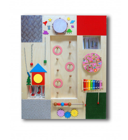 - Бизиборд с цепочками-колечками отлично подходит для игры как в домашней обстановке, так и в детских учреждениях.