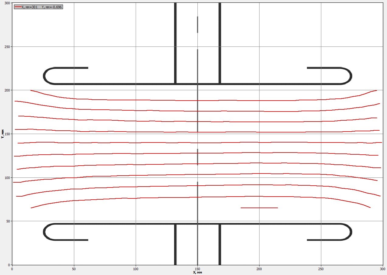 При проведении измерений используется несколько программных сценариев, один из которых предусматривает формирование в полуавтоматическом режиме трехмерного массива данных (потенциал и две координаты точки). Полученные данные представляются на экране как в виде трехмерной картины, так и в виде эквипотенциалей — линий пересечения трехмерной поверхности с плоскостями постоянного потенциала. В ряде сценариев реализуется прямое измерение напряженности поля как напряжения между электродами зонда, отнесенного к расстоянию между ними. В том случае, если геометрия электродов допускает аналитическое решение задачи о распределении поля и потенциала, проводится сравнение данных эксперимента с теоретической зависимостью.