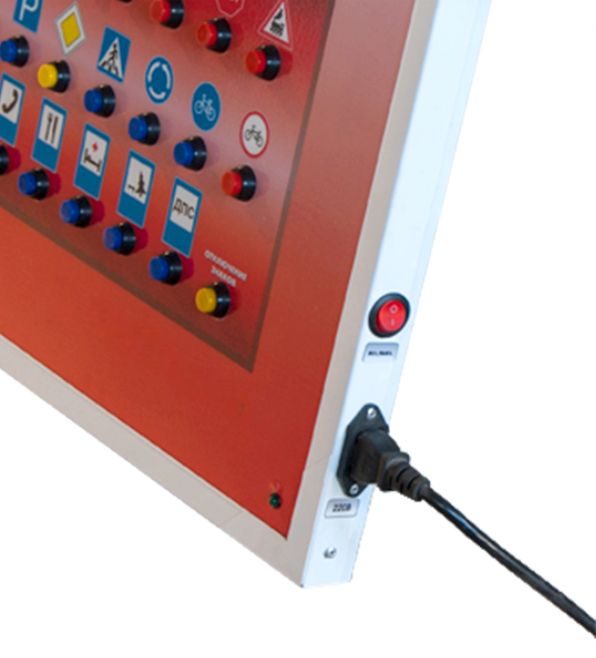 Базовый комплект светового оборудования представляет собой набор из двух информационных панелей, на которых размещено 23 световых элемента в виде наиболее распространенных дорожных знаков.
